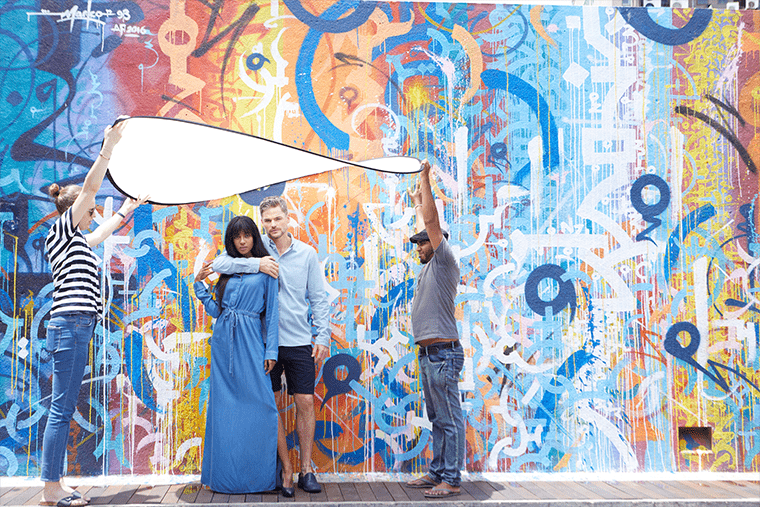 As the day progressed, we jumped into multiple outfits and combinations before moving on to Park Street Mews. We managed to get permission to shoot in front of their graffiti walls. It was 1 pm, and the sun was directly above us – we had to improvise using the reflectors as shades – but the pictures came out beautifully. Day 1 was completed.